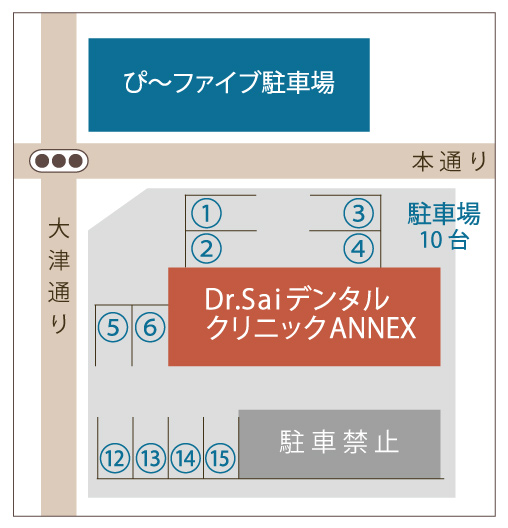 駐車場は「①〜⑥、⑫〜⑮」をご利用ください。