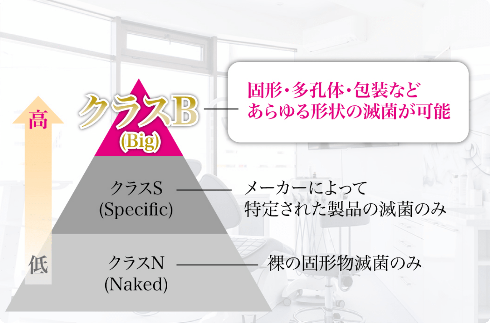 Dr.SaiデンタルクリニックANNNEXでは院内感染予防を徹底するため、ヨーロッパ規格で最高と位置付けられる「クラス B」の滅菌機械を導入しています。